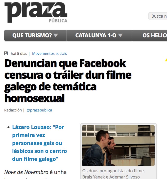 Os medios volcanse na cobertura da censura de Facebook a promoción do trailer de ‘Nove de Novembro’